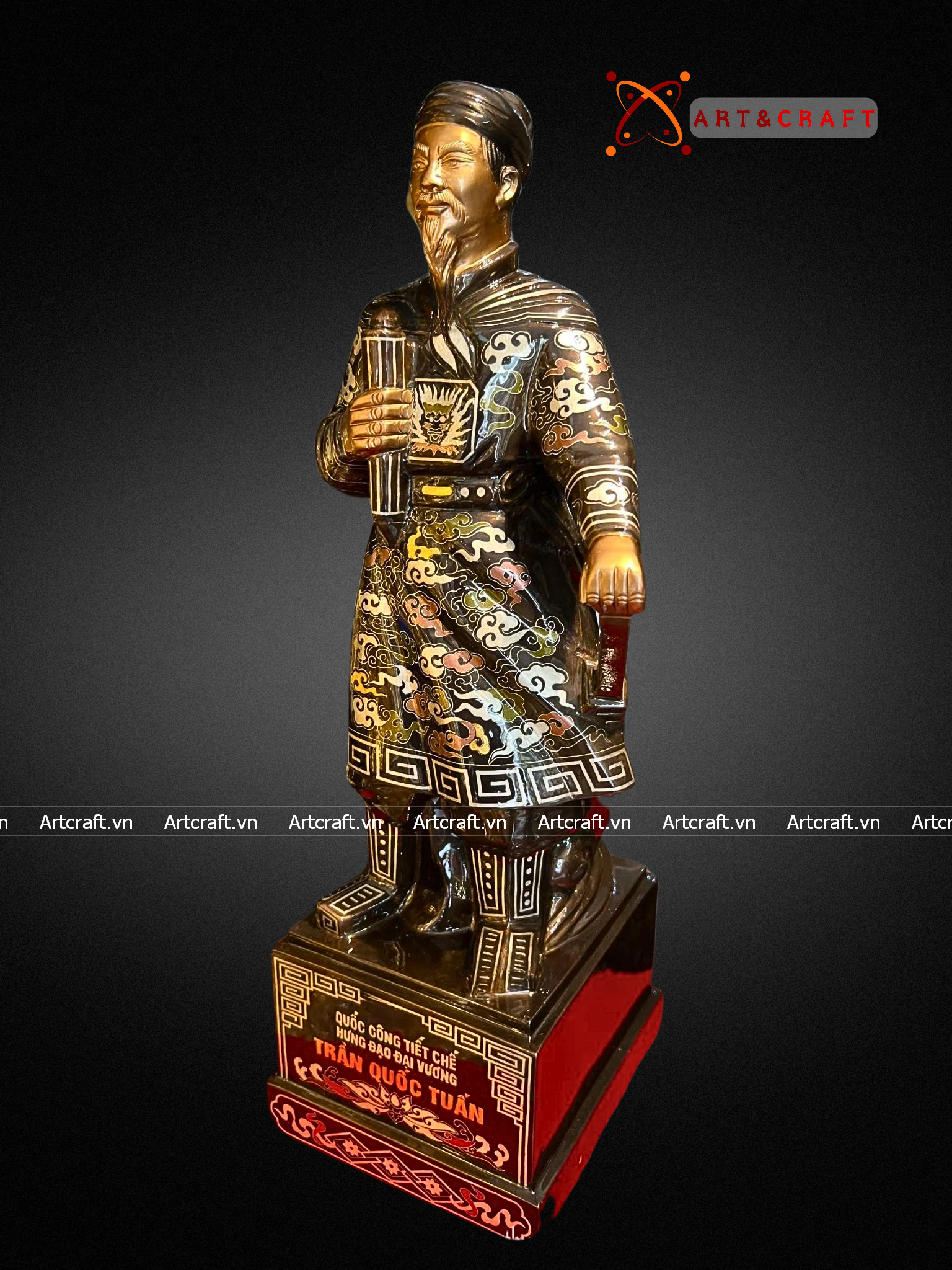 + Quà Tặng Sếp Tượng Trần Hưng Đạo được chế tác từ đồng cao cấp có giá trị cao và được xử lý bề mặt bằng lớp phủ bảo vệ tránh oxi hóa nhưng theo thời gian nhiều năm có thể bị tác động bởi các yếu tố bên ngoài nên cần lưu ý tránh đặt tượng nơi ánh sáng mặt trời chiếu vào trực tiếp, nơi bụi bẩn, ẩm ướt.