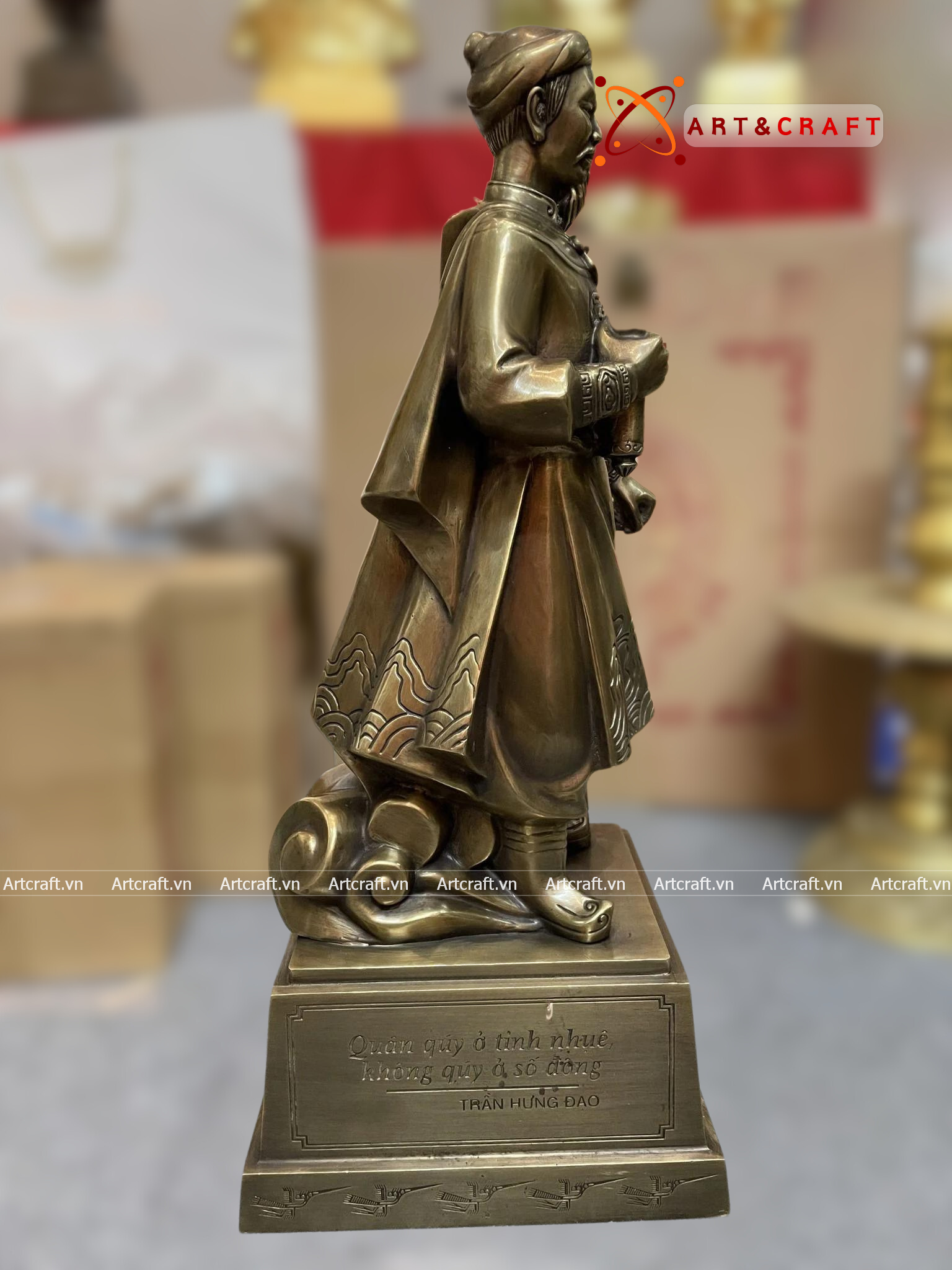 + Quà Tặng Sếp Tượng Trần Hưng Đạo được chế tác từ đồng cao cấp có giá trị cao và được xử lý bề mặt bằng lớp phủ bảo vệ tránh oxi hóa nhưng theo thời gian nhiều năm có thể bị tác động bởi các yếu tố bên ngoài nên cần lưu ý tránh đặt tượng nơi ánh sáng mặt trời chiếu vào trực tiếp, nơi bụi bẩn, ẩm ướt.