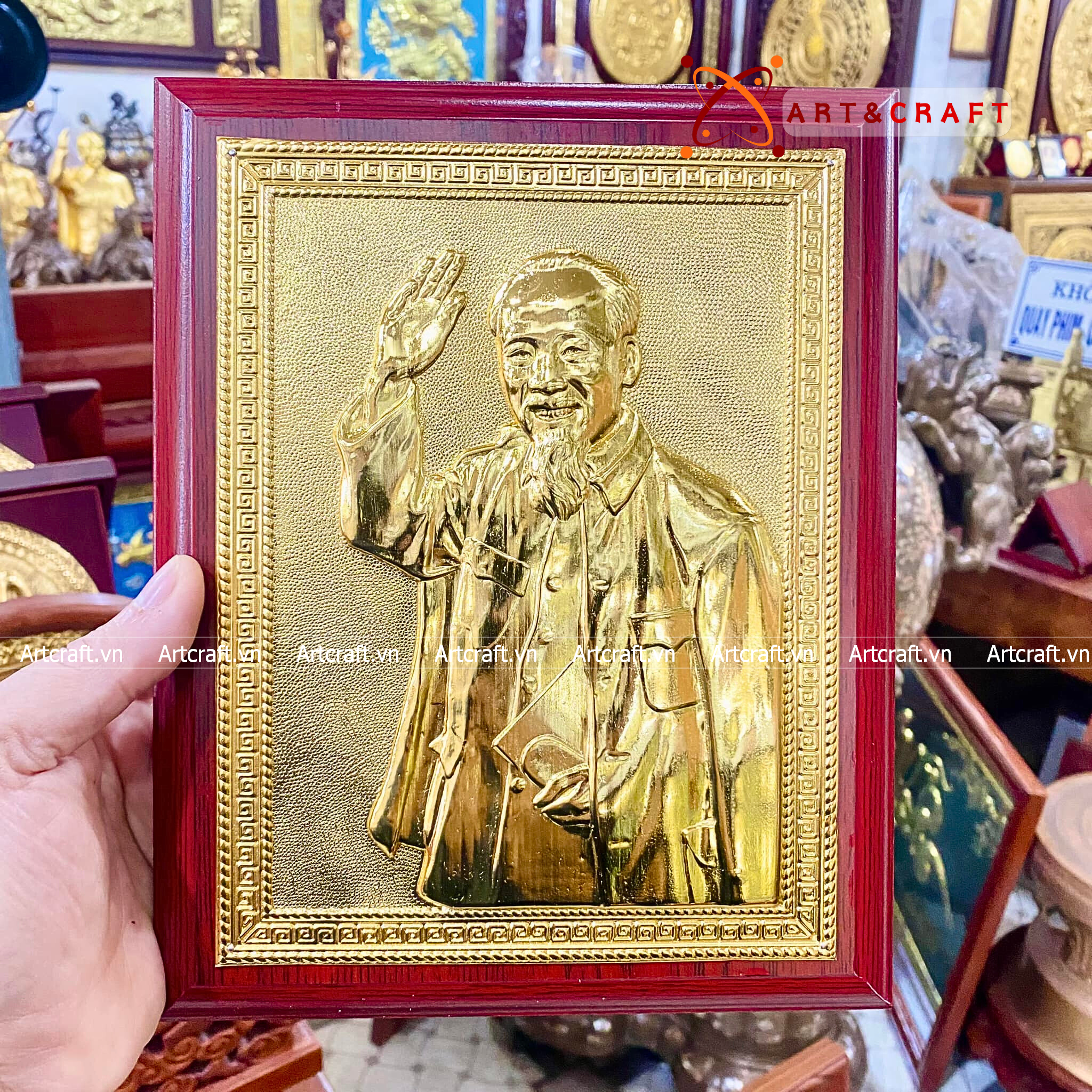 - Họa tiết tinh xảo: Tấm đồng được dát mỏng thúc chạm nổi hình ảnh Bác Hồ vừa thân thương vừa gần gũi.