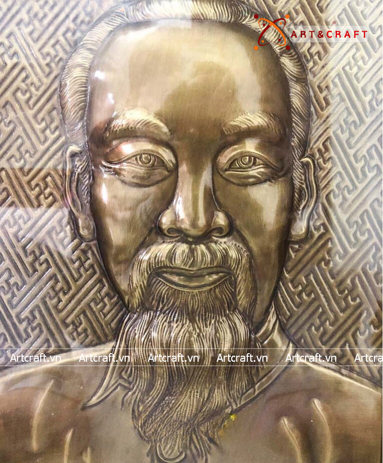 - Họa tiết tinh xảo: Tấm đồng được dát mỏng thúc chạm nổi hình ảnh Bác Hồ vừa thân thương vừa gần gũi.