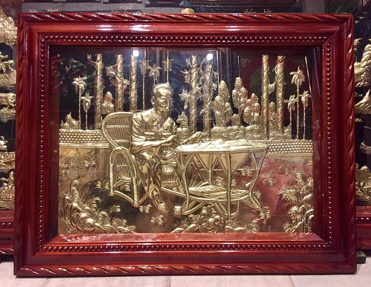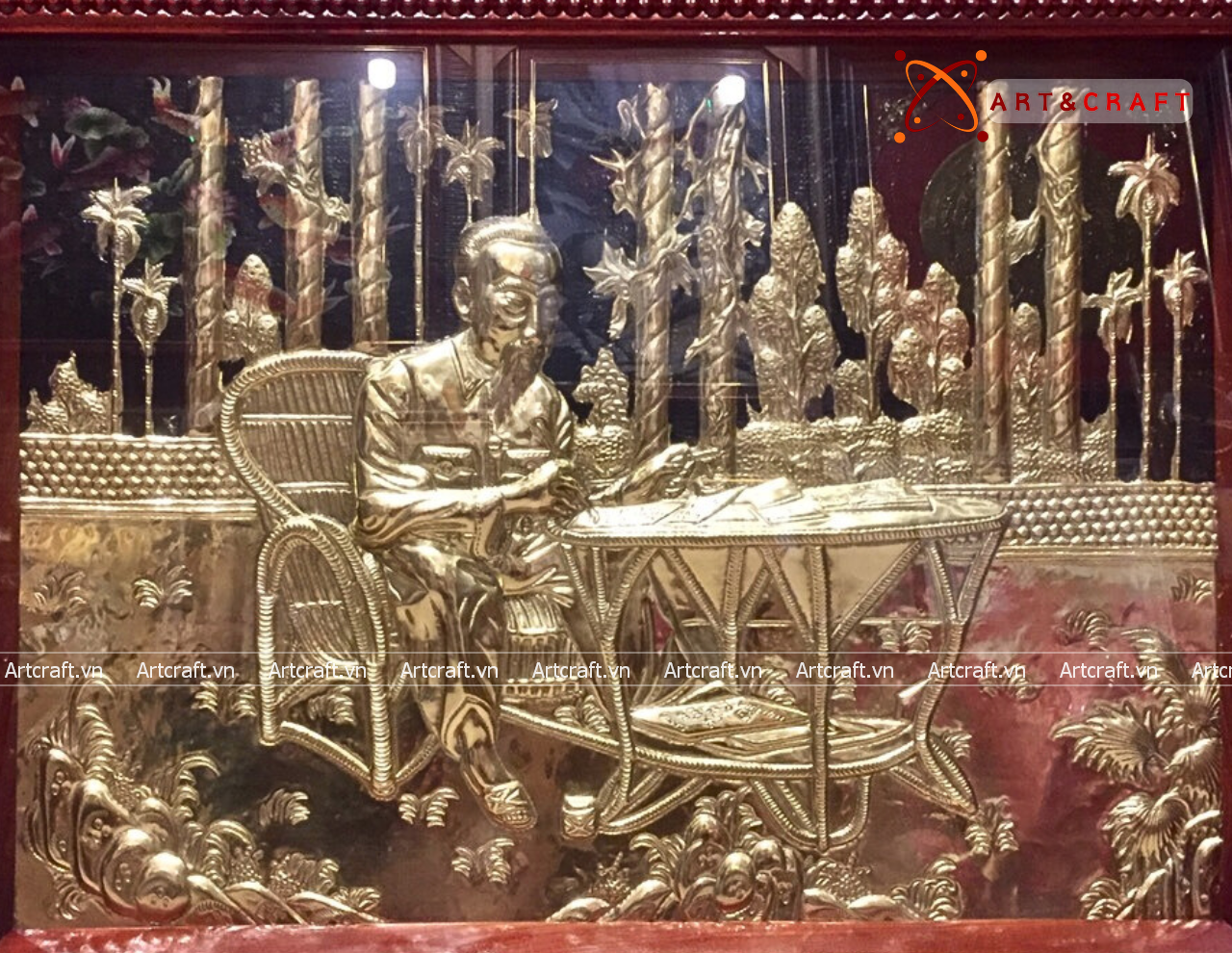 - Họa tiết tinh xảo: Tấm đồng được dát mỏng thúc chạm nổi hình ảnh Bác Hồ vừa thân thương vừa gần gũi.