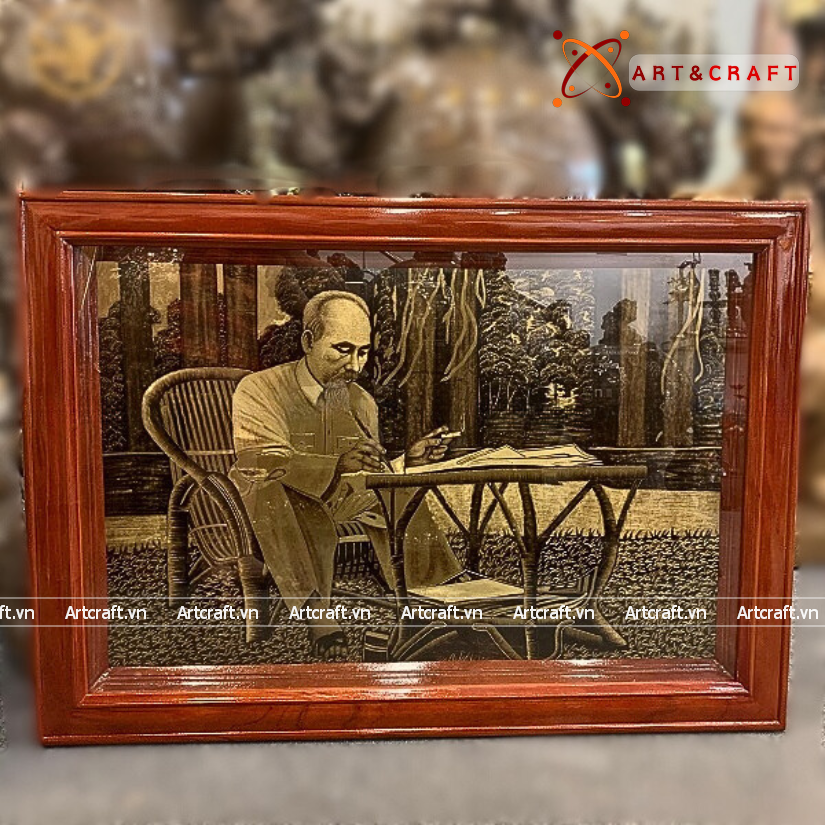 - Họa tiết tinh xảo: Tấm đồng được dát mỏng thúc chạm nổi hình ảnh Bác Hồ vừa thân thương vừa gần gũi.