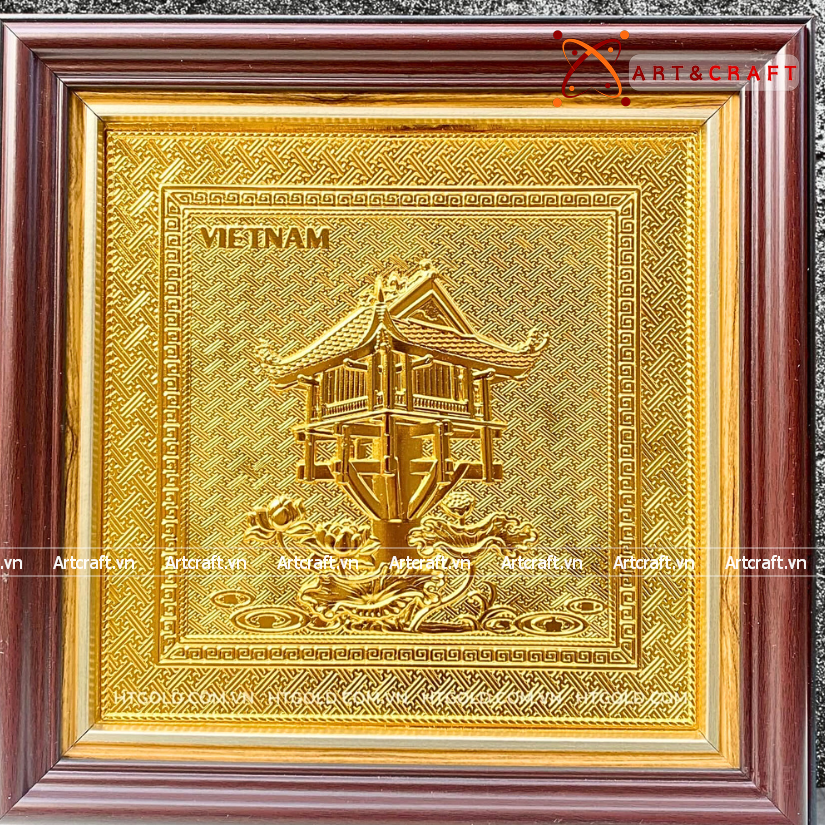 - Họa tiết tinh xảo: Tấm đồng được dát mỏng thúc chạm nổi tiêu bản chùa một cột, một trong những di sản lâu đời của dân tộc ta.