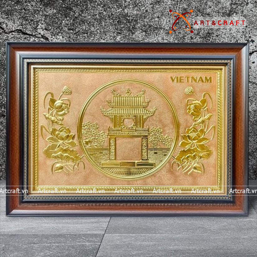 - Chất liệu cao cấp: Nguyên liệu chính tạo nên Quà Tặng Tranh Chùa Một Cột chính là đồng, là kim loại quý thứ 3 trong tự nhiên. Đây là kim loại mềm, uốn dẻo tốt và được tinh luyện ở khoảng 1000°C có tính chịu nhiệt tốt, bền đẹp khi để ngoài môi trường.
