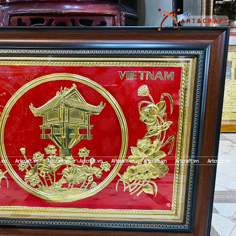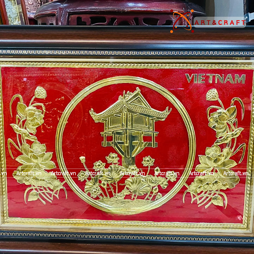 - Họa tiết tinh xảo: Tấm đồng được dát mỏng thúc chạm nổi tiêu bản chùa một cột, một trong những di sản lâu đời của dân tộc ta.
