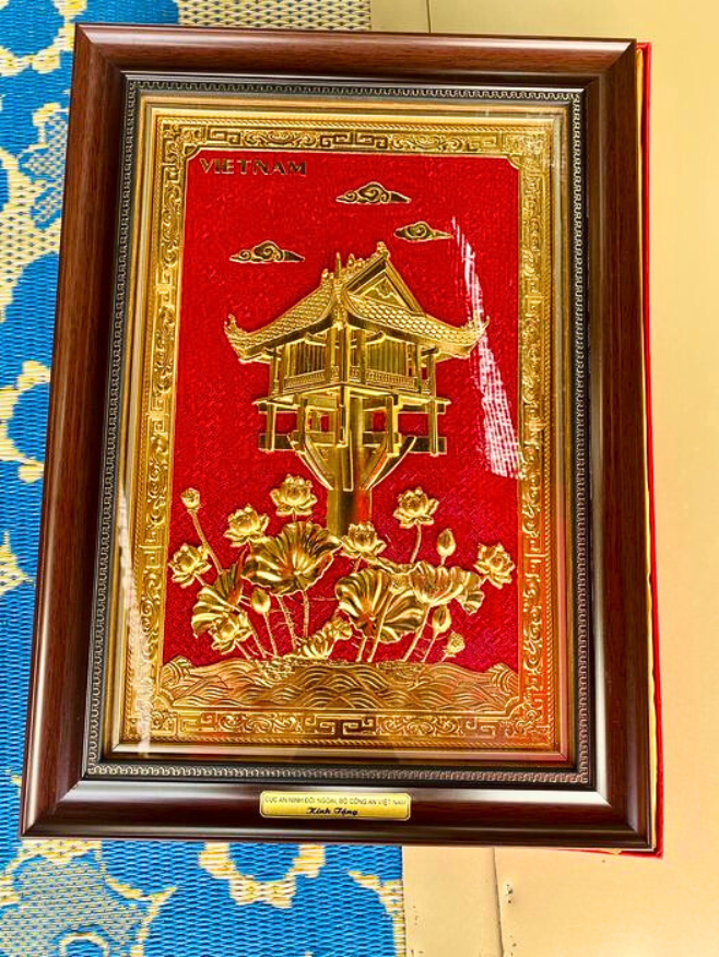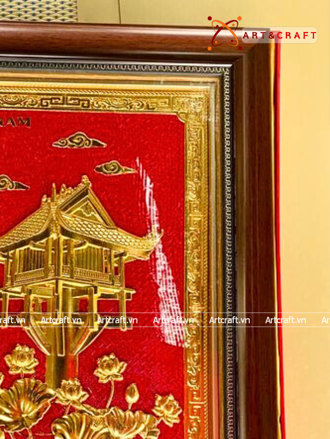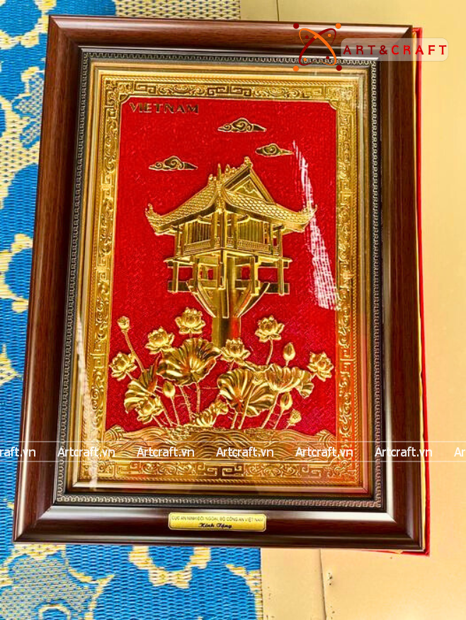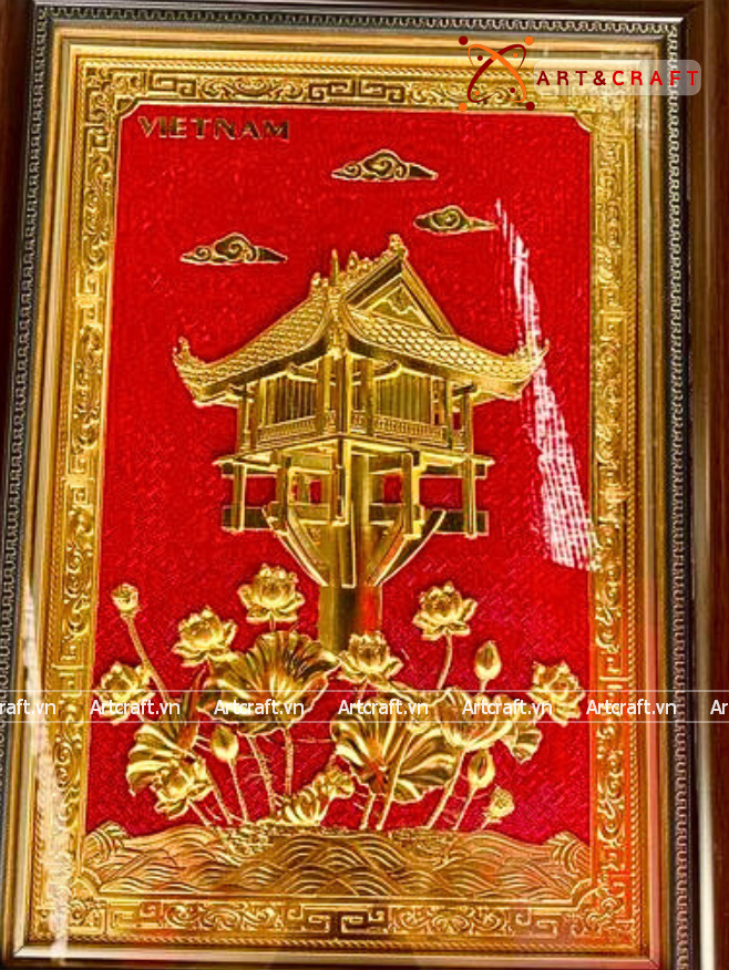 - Họa tiết tinh xảo: Tấm đồng được dát mỏng thúc chạm nổi tiêu bản chùa một cột, một trong những di sản lâu đời của dân tộc ta.