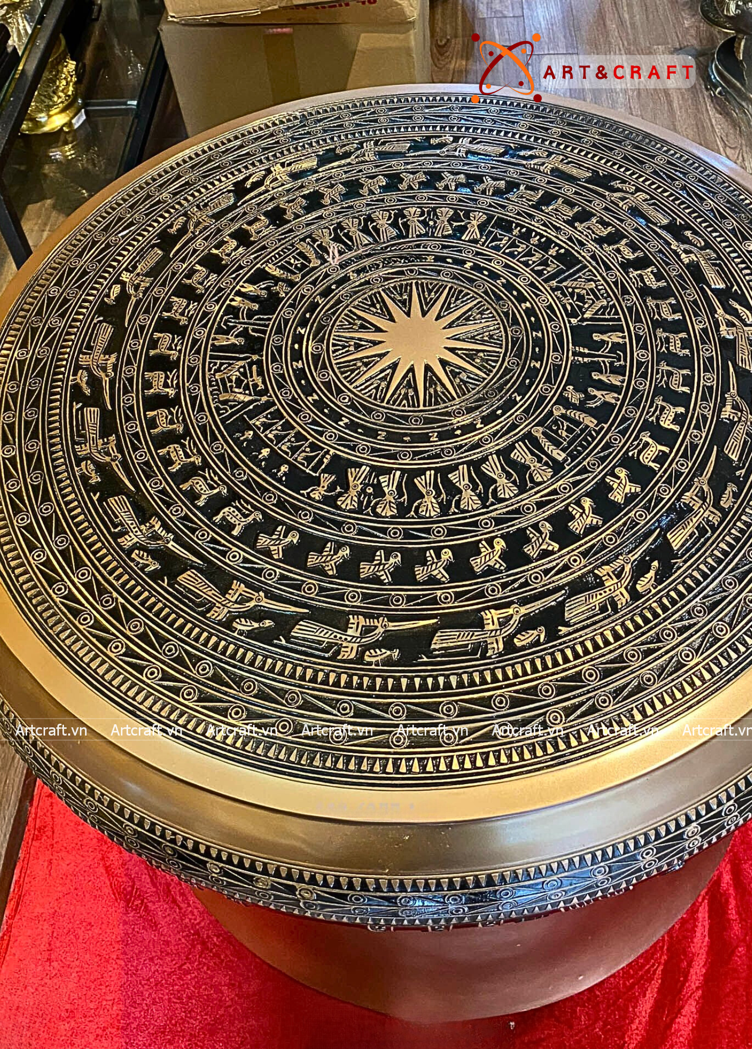 - Họa tiết tinh xảo: Quà Tặng Trống Đồng Đông Sơn được đúc chạm tinh xảo với hình tượng chim lạc, ngôi sao và các cảnh quan sinh hoạt thể hiện sống động đời sống thời kỳ văn minh Đông Sơn.