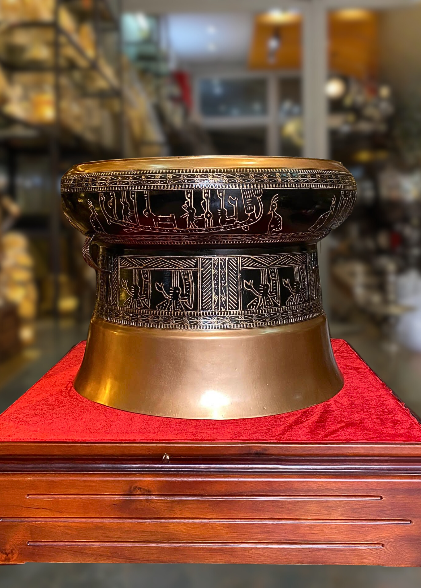 + Đặt tại kệ trưng bày tượng: Quà Tặng Trống Đồng Đông Sơn thường được đặt trên bục đặt trống hoặc đôn để làm tăng tính sang trọng cho căn phòng, cũng là tính cách, tinh thần của gia chủ người trưng bày trống.